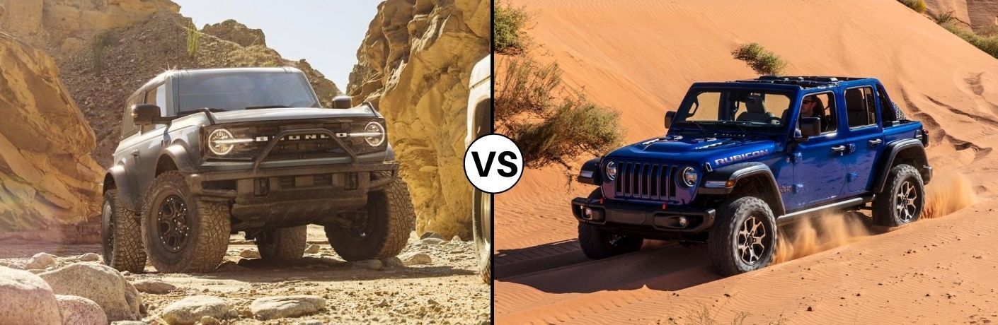 When it comes to making the most of your daily commute, weekend excursions or cross-country road trips, driving in a stylish vehicle that offers a distinct design, versatile performance and technology that adds safety and convenience to each ride is important. Those searching for a convertible SUV that offers impressive off-road performance and removable doors now have two iconic options to choose from—the Ford Bronco and Jeep Wrangler. After a 25-year hiatus, the Ford Bronco has made its return to contend with the Wrangler for the position of the most dynamic, technology-packed off-road SUV on the market. Let’s compare the 2021 Bronco vs the 2020 Wrangler below.